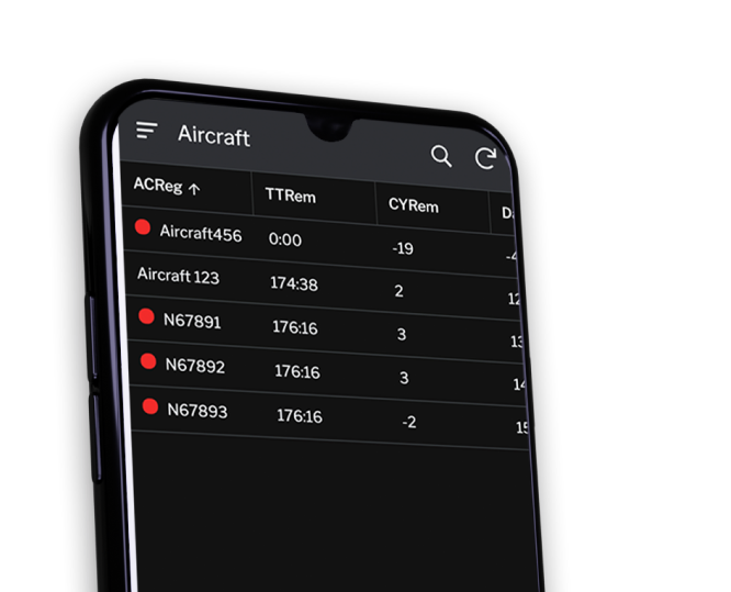 Add your fleet. Enter each aircraft's registration, current time, and next maintenance due.