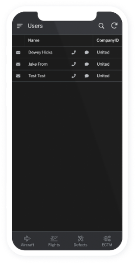 Open the app on your iOS device or click "App User Login" from the website here. Our user types are Company Admin, Admin, & User/crew. Users can add flights, defects, and ECTM data. Admin can do that plus edit. Company admins can add aircraft and add other users.